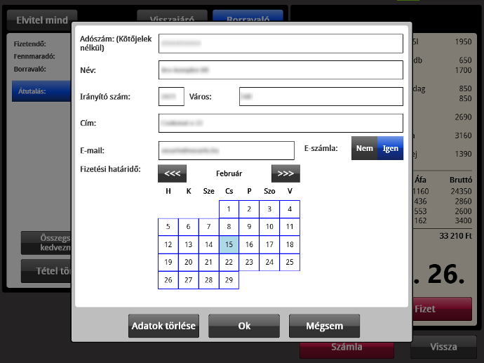 A következő képek bemutatják a számla kiállítás menetét, illetve annak funkcióit.