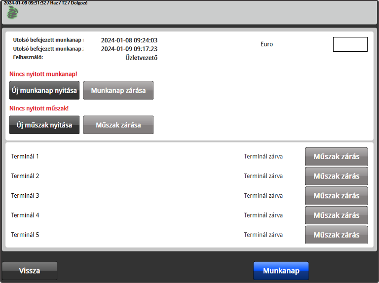 Miután beléptél kezdődhet a rendszer napnyitása.