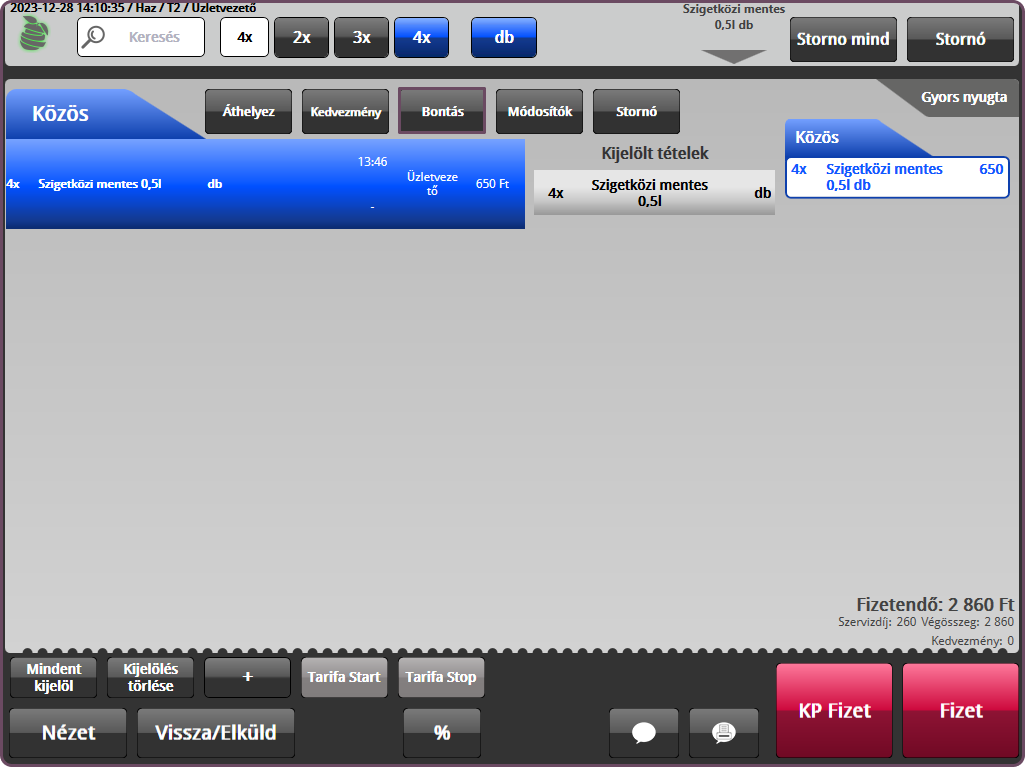 A termék bontás funkció elsősorban nagyobb társaságoknál lehet hasznos, ahol a vendégek külön-külön szeretnék fizetni az elfogyasztott termékeket, a termékek pedig egyben lettek felütve.